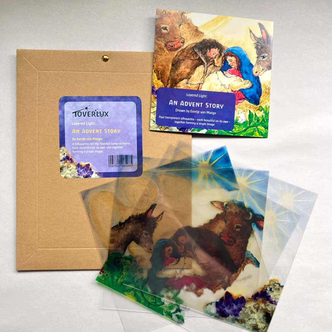 For best chance of delivery by December 24th, order this item by December 16th with Standard Shipping.A new way to experience the magic of the Toverlux Lamp - this Layered Light set by artist Eentje van Margo brings the story of Advent to life through depth, color, and gentle illumination. Four translucent silhouettes, each representing one of nature’s kingdoms, come together to form a single, radiant scene: the mineral world, the plant world, the animal kingdom, and finally, the Holy Family at the heart of it all. When layered in the Toverlux Waldorf Night Light (sold separately), these pieces create a stunning sense of dimension and peace, guiding families through the quiet beauty of the season.