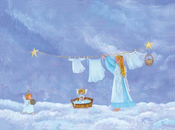One day, while playing in heaven among drifts of white clouds, Little Angel sees Bountiful Earth.