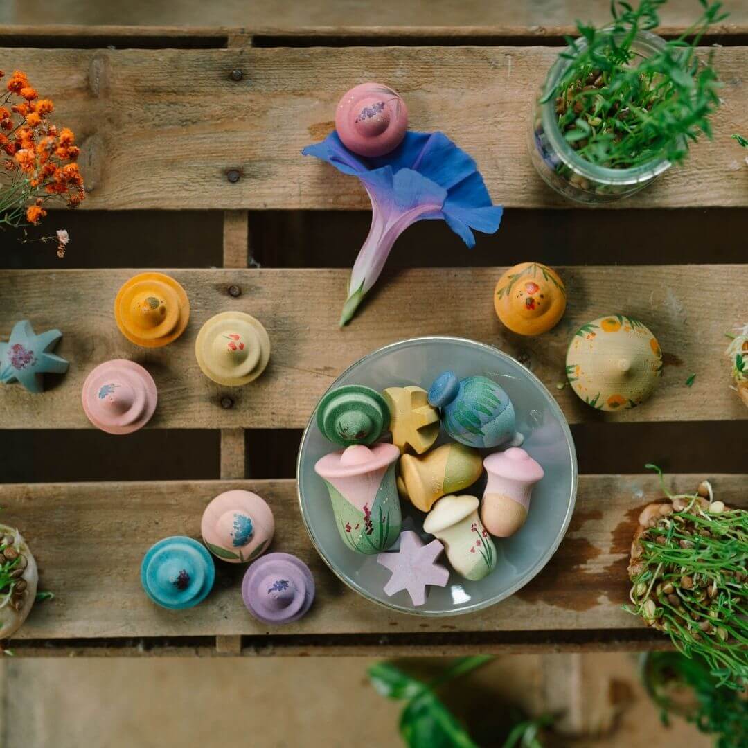 What if you could hold a garden in your hands? These 18 hand-painted wooden flowers from Grapat bloom without needing sun or water, ready to brighten any small-world scene. Thoughtfully sized for little hands to pick up, trade, and arrange, they invite children to create colorful bouquets, flower crowns, and imaginative landscapes.