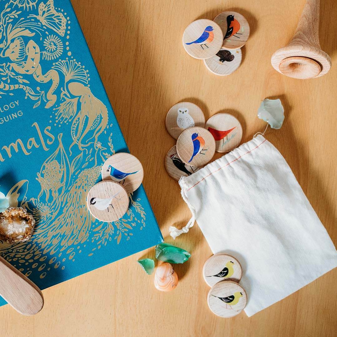 Budding birders and nature enthusiasts will love this wooden Bird Memory Tiles Game. Each tile has a beautiful color illustration of a common bird.