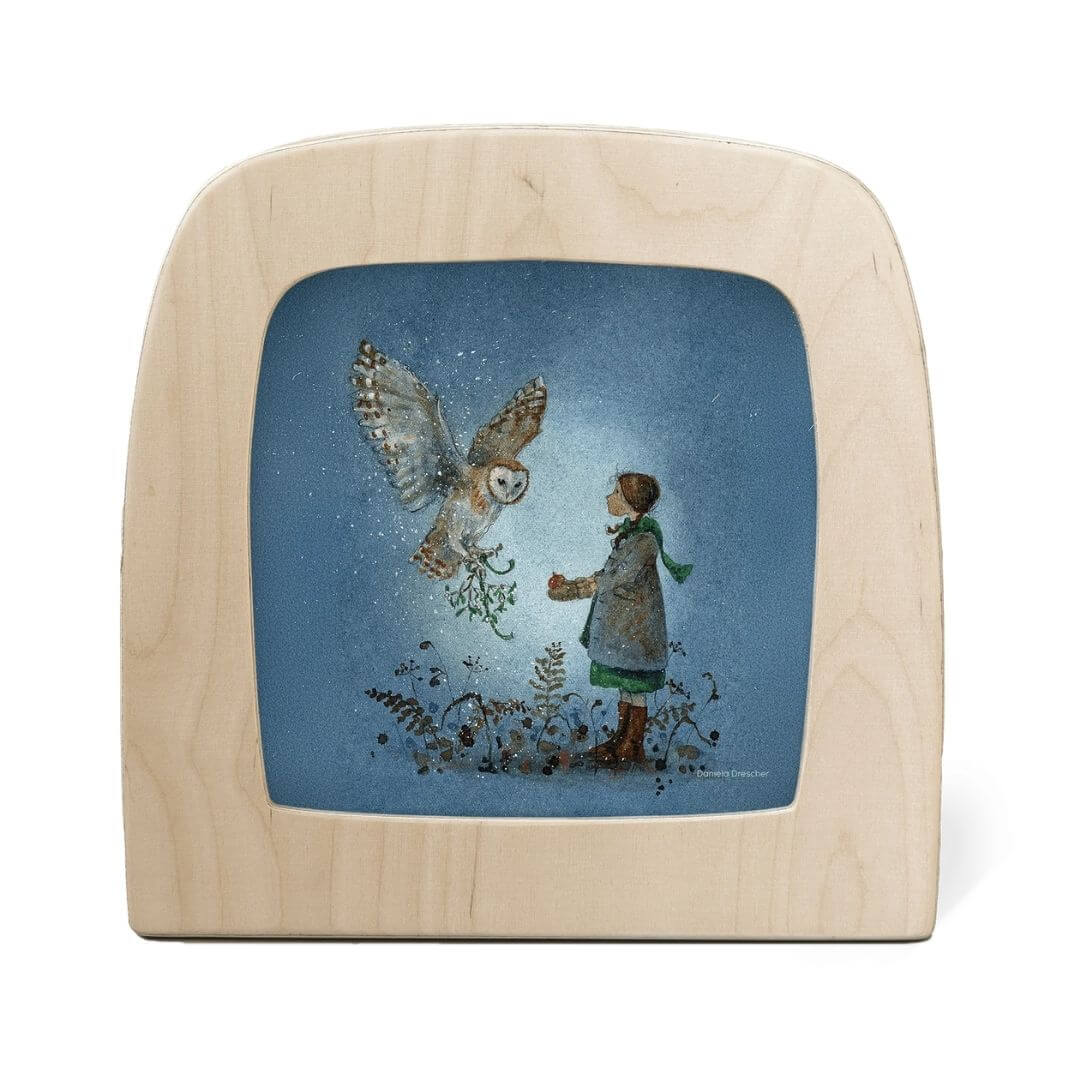 Bring the quiet beauty of winter indoors with this enchanting collection of four winter themed transparencies by beloved artist Daniela Drescher, designed for the Toverlux Lamp and Frame.  From a snowy woodland cabin to a fairy sharing a Christmas gift, these scenes glow softly, filling your home with the gentle wonder of wintertime. Perfect for cozy nights, bedtime stories, or quiet family moments, this set celebrates the magic of the season in Daniela’s timeless, nature-inspired style.