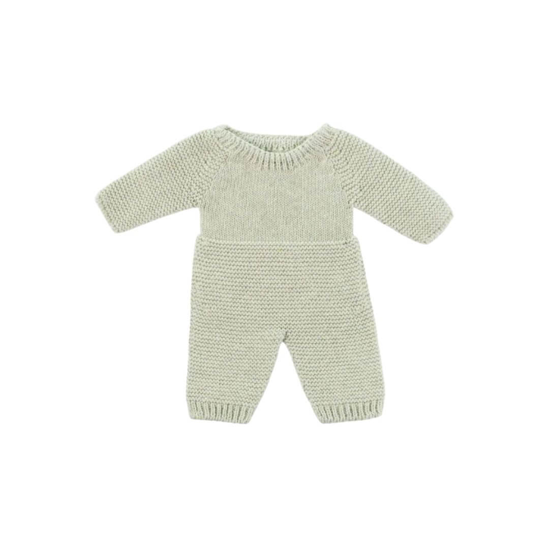 For best chance of delivery by December 24th, order this item by December 16th with Standard Shipping.These cozy Sage Green Knit Doll Pajamas are perfectly sized for 12" Miniland Dolls and bring warmth and charm to any doll wardrobe. Made in Spain from recycled materials, they’re part of Miniland’s sustainable knitwear collection, designed in soft, earthy tones with a handcrafted look.