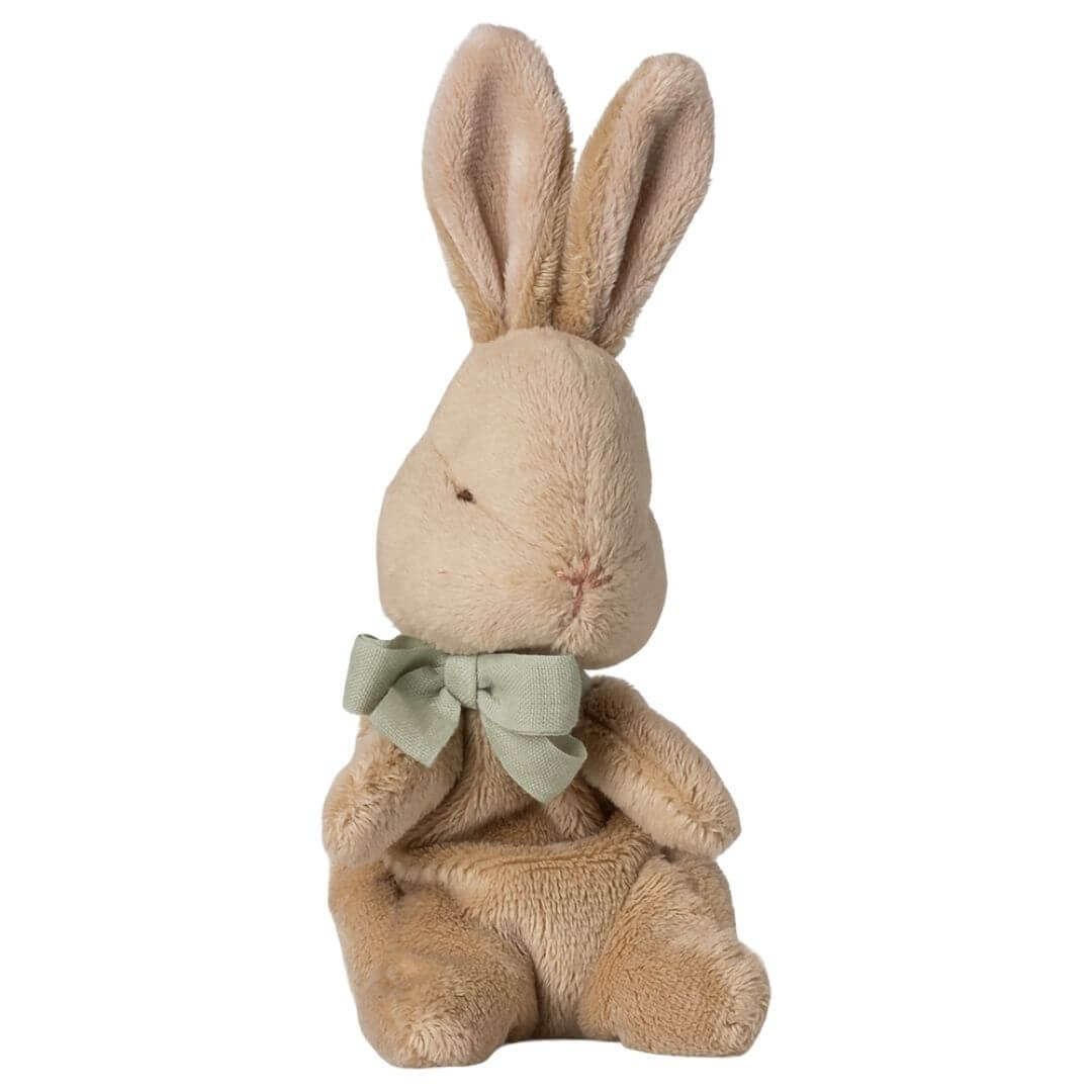 My First Bunny by Maileg in brown, a soft plush bunny with a ribbon bow.