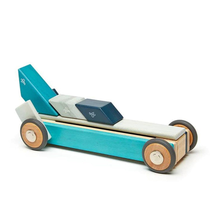 Take your block collection on the road with the Tegu Travel Tote, or add a Set of 4 Magnetic Wheels to make your child's creations zoom!