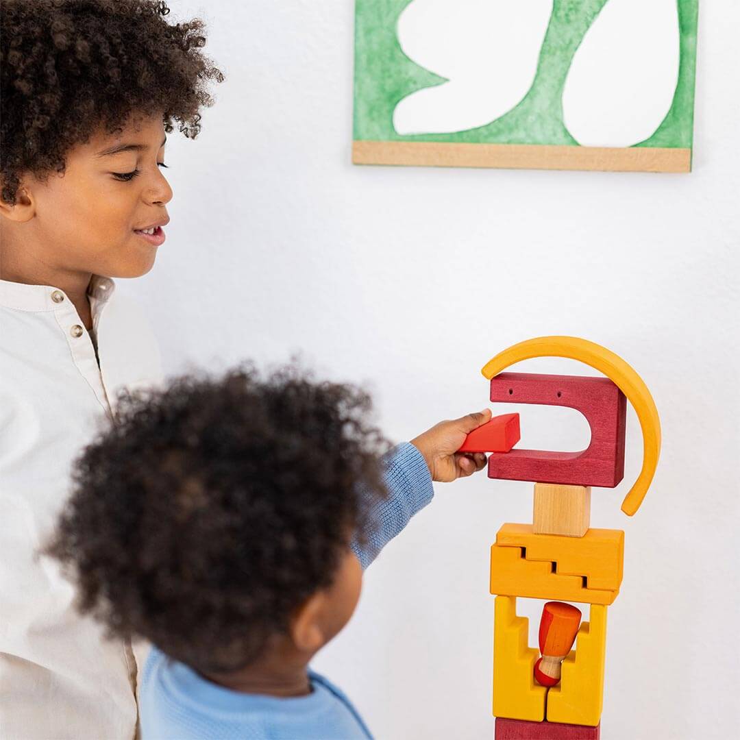 Build castles in the sand and soak in the desert's blazing heat with this rich Building World Desert Sand Set from Grimm's Spiel & Holz. This evocative wooden building set will transport imaginations to the vastness of the desert. The reds, oranges, yellows, and deep blues mixed with natural wood give the building world desert sand set a deep warmth.