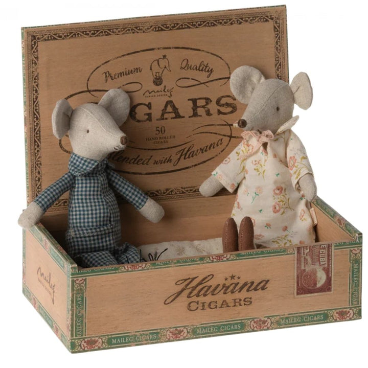For best chance of delivery by December 24th, order this item by December 18th with Expedited Shipping.Grandma and Grandpa Mice are traveling in style in their very cozy Cigarbox and are all suited for a restful sleep. A classic Maileg duo, this loving mouse couple is updated for the 2023 collection.