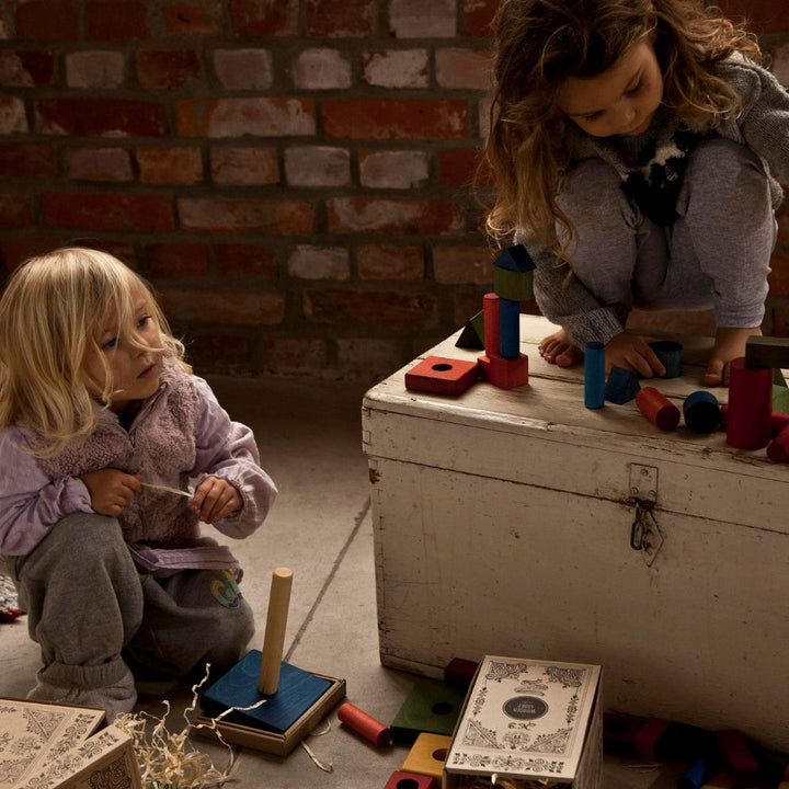 Wooden blocks encourage sensory  and open-ended play and this set will last for generations of play. The blocks arrive in a gorgeously illustrated cardboard box making them a perfect gift.