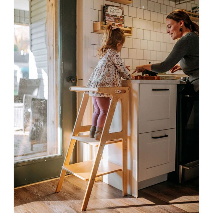 Designed for learning, playing, cleaning and cooking with children, this play tower will be an indispensable part of your family kitchen time. The play tower fits easily under countertops for easy storage.