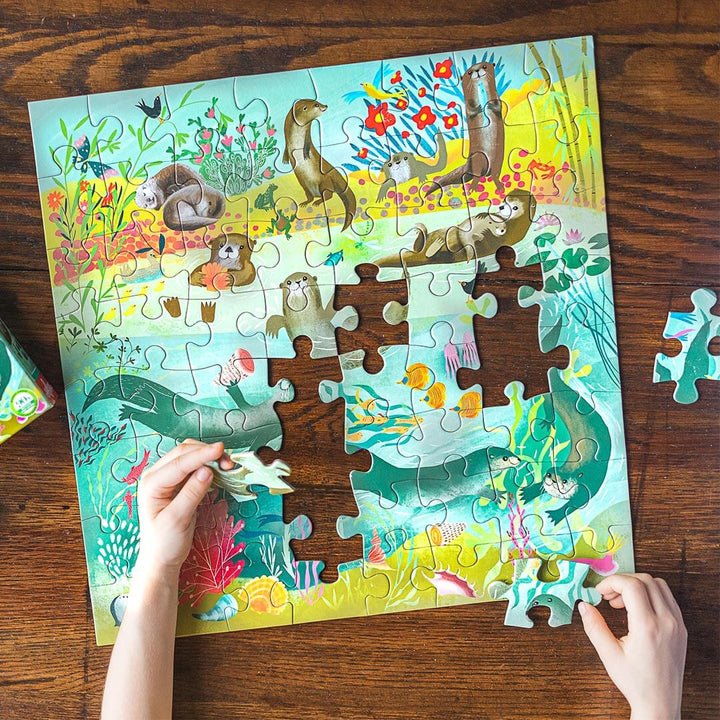 Otters at Play 64 Piece Jigsaw Puzzle with above and below water illustrated scene
