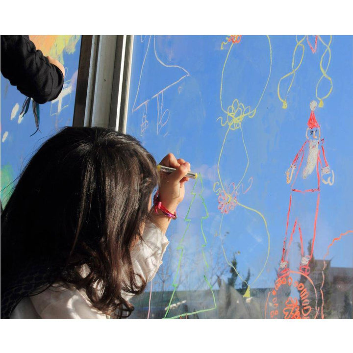 Add a few strokes of a wet brush and your children's window drawings bloom forth as life-size watercolors!