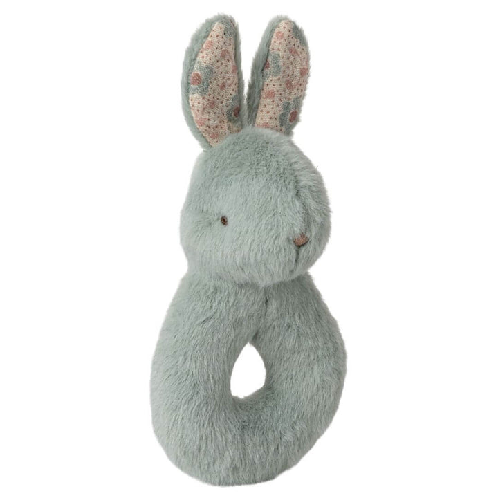Celebrate a new arrival with the Maileg Rabbit Rattle Baby Gift Set in Mint, a beautifully designed gift that's perfect for first snuggles and early play. This set includes a soft, patterned cotton cloth and an adorable rabbit rattle in a calming mint green shade.